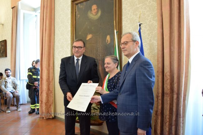 I PREMIATI – Cavalieri oltre a Dachan, Giuseppe Ardolino, Montemarciano, brigadiere capo della Guardia di finanza, Domenico Di Ruvo, Senigallia, Maresciallo capo dell’arma dei carabinieri, Rodolfo Giampieri, Ancona, presidente dell’autorità di sistema portuale del mare adriatico centrale, Giovanni Borsini, Polverigi, impiegato del ministero della difesa, Onofrio Dalessandro, Ancona, ufficiale della Marina, Onorisio Dateo, Porto Recanati, brigadiere guardia di finanza, Mario Tomai, Osimo, sottoufficiale della Marina. Commendatori: Andrea Lardini, Filottrano, imprenditore. Medaglia d’onore: Giovanni Camilletti, Castelfidardo, (ha ritirato il nipote Giosef)