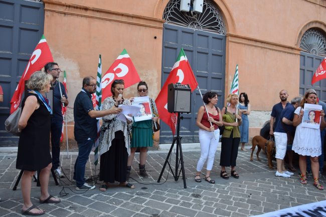 “Quando la legge viola i diritti è un diritto violare la legge”, “Free Carola”. Sono queste alcune delle scritte che abbracciano su lunghi striscioni bianchi i manifestanti scesi oggi in piazza del Plebiscito di Ancona. Circa 300 le persone armate di bandiere (campeggiano le sigle sindacali di Cgil, Cisl e Uil e quella dell’Anpi) che hanno sfidato l’afa del pomeriggio per protestare contro l’arresto di Carola Rakete, capitana della Sea watch. È il suo viso che campeggia in diversi cartelloni portati tra le mani dalle manifestanti, mentre al microfono si susseguono gli interventi.