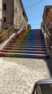 È bellissima la scalinata con i colori dell’ arcobaleno, una bella