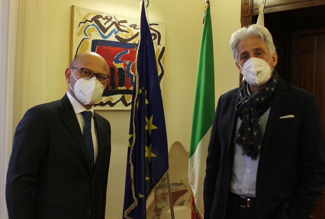 Incontro in Comune tra il nuovo questore Vincenzo Trombadore e il sindaco Sandro Parcaroli. «Piena collaborazione, mia personale come primo cittadino e dell’intera amministrazione, nel perseguimento di un obiettivo comune a entrambe le istituzioni in cui operiamo, quello di garantire la sicurezza e la legalità nel nostro territorio e conseguentemente il benessere dei cittadini e la crescita dell’intera comunità, che voglio intendere non solo locale ma provinciale» ha detto il sindaco quando oggi pomeriggio ha ricevuto negli uffici di piazza della Libertà il nuovo numero uno della questura, che proprio oggi si è insediato al posto di Antonio Pignataro, che ha ricoperto lo stesso incarico negli ultimi due anni e 10 mesi. Il questore ha sottolineato che per lui è fondamentale operare in piena sintonia, collaborazione e sinergia con il Comune, e quindi con il sindaco, per svolgere insieme nel rispetto delle rispettive funzioni il loro compito a favore della comunità, facendosi carico delle esigenze che la stessa manifesta direttamente o attraverso le istituzioni. «Non è un caso – ha aggiunto Trombadore – che nel primo giorno del mio insediamento ho voluto incontrare il sindaco Parcaroli, in quanto alla guida della comunità in cui mi accingo a operare». E’ stato un incontro proficuo, nel corso del quale il sindaco e il questore si sono confrontati su alcuni aspetti relativi alla realtà maceratese e su alcune visioni e progetti per il futuro della città, sui quali è stata riscontrata convergenza di vedute e unità d’intenti.