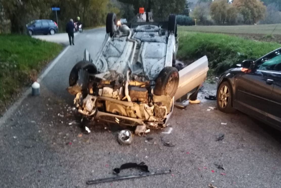 Perde il controllo dell’auto, finisce sul fianco di una collinetta e poi si ribalta in mezzo alla strada colpendo una vettura in transito: il conducente e i due figli minori che erano con lui sono stati portati in ospedale. Le loro condizioni non sono gravi. L’incidente è avvenuto intorno alle 15,40 di questo pomeriggio lungo la strada tra Chiesanuova e Treia in un tratto particolarmente pericoloso. Per cause in corso di accertamento (i rilievi sono stati fatti dalla polizia locale), il conducente di una Citroen Saxo mentre scendeva da Treia ha perso il controllo della sua auto che poi, secondo una prima ricostruzione, è finita sulla corsia opposta, è salita sul fianco della collinetta a lato della carreggiata e si è poi ribaltata sul tettuccio andando a colpire, prima di arrestarsi nel mezzo della strada, l’Audi A3 di una donna che stava viaggiando in senso contrario. Immediati i soccorsi sul posto. Gli operatori del 118 hanno soccorso il padre con i due figli che sono stati tutti portati in ospedale per curare ferite, per fortuna lievi, riportate nell’incidente. I vigili del fuoco si sono occupati della messa in sicurezza di mezzi e strada. La donna a bordo dell’Audi A3 non ha avuto necessità di cure in ospedale.