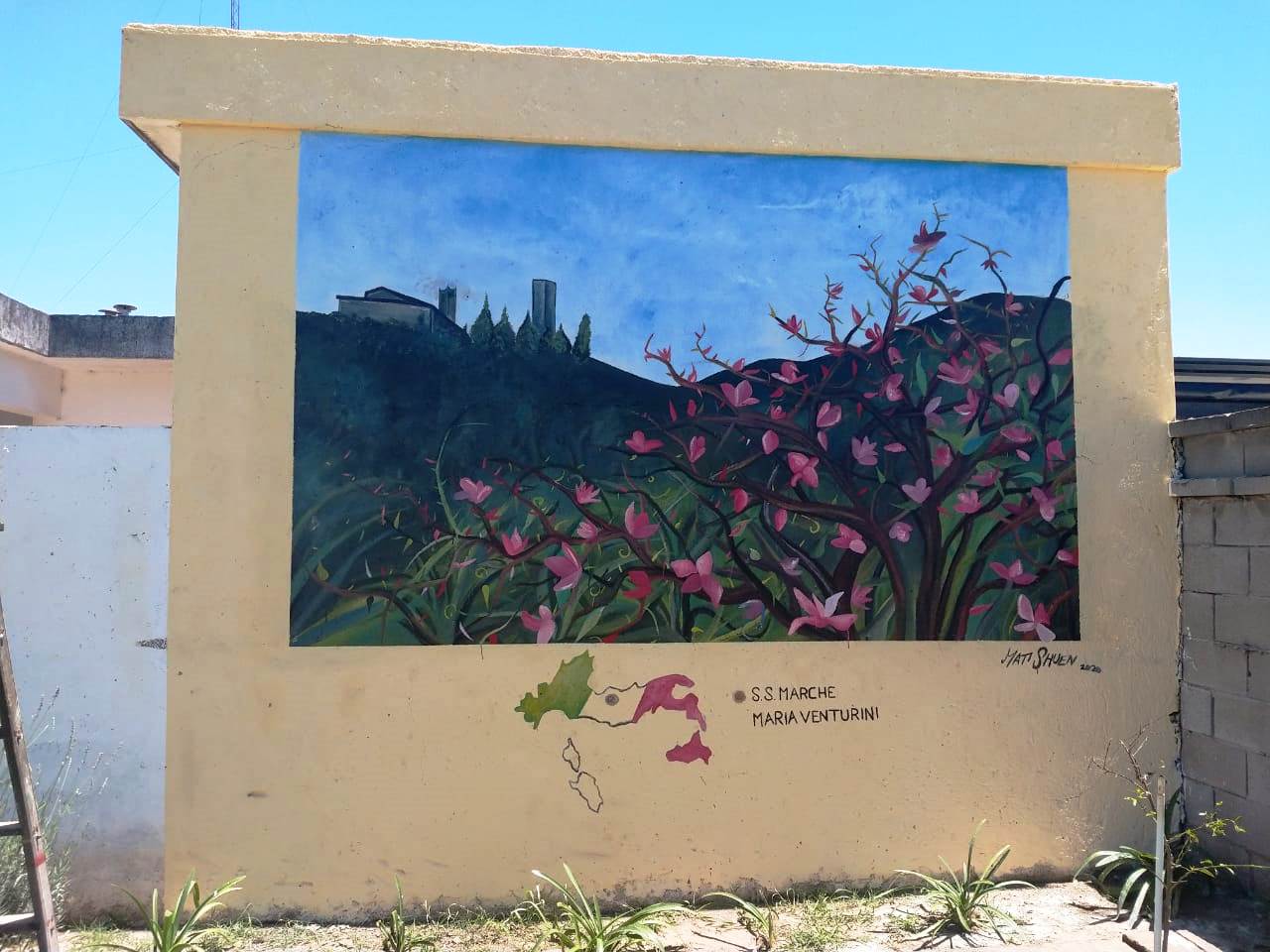 Uno scorcio di Castello al Monte di San Severino e una pianta fiorita, simbolo di speranza e di rinascita. Si dice che la lontananza, a volte, faccia aumentare il desiderio di tornare in un determinato luogo cui si è legati. Questo desiderio una famiglia argentina, che oggi vive nella provincia di Santa Fe ma i cui avi sono originari proprio di San Severino, lo ha voluto addirittura immortalare in un murales fatto realizzare da un giovane pittore nel grande patio di casa, a Chabas, per sentire la vicinanza a quella straordinaria terra, l’Italia, per la quale il cuore di molti continua a battere. I protagonisti di questa insolita e intensa storia sono Emiliano ed Evangelina e la loro piccola Anna: «Abbiamo visitato la vostra città cinque anni fa perché la nonna di Emiliano, Maria Venturini, era originaria di lì. Poi, una volta tornati a casa, abbiamo deciso di lasciare un segno che ricordasse in qualche modo le nostre origini. Ogni volta che usciamo in cortile, ora, pensiamo un po’ a voi». La storia che arriva a noi da chilometri e chilometri di distanza racconta dei trascorsi delle famiglie Marinozzi e Venturini ma anche dei Rogani e dei Gubinelli. Di viaggi verso una terra dove un tempo si andava in cerca di lavoro e di speranza ma anche di una città, San Severino, che non è certo facile da dimenticare quando si è lontani. «La nonna di mio marito, che di cognome fa appunto Marinozzi – spiga Evangelina – insieme a suo padre e diversi fratelli tanto tempo fa è venuta in Argentina in cerca di benessere a causa della guerra. Per la nonna Maria è stato molto difficile lasciare il resto delle sorelle e dei nipoti in Italia perché sapeva che forse non si sarebbero rivisti tant’è che così è stato. Ma l’amore, le radici, non vengono mai dimenticati ed è per questo che abbiamo deciso di realizzare questo murales a suo nome e per conto della famiglia. Lei ci ha trasmesso quell’amore straordinario per la sua terra che ora noi conserviamo e che un giorno tramanderemo sicuramente a nostra figlia».