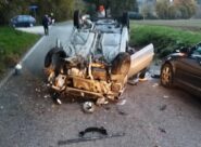 TREIA – La vettura è finita sul fianco di una collinetta per urtare un’Audi A3 e fermarsi capovolta in mezzo alla strada. I feriti non sono gravi