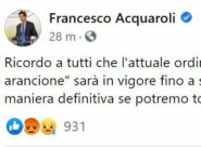 COVID – Il presidente della Regione ha chiarito in un post su Facebook che l’ordinanza per la zona arancione sarà comunque in vigore fino a sabato alle 24