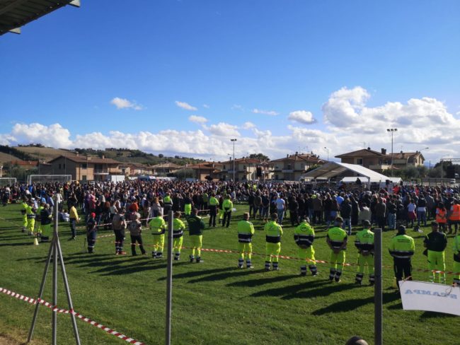 , 65 anni, il figlio Andrea di 25, Diego Chiappetti, 52 anni, e Fernando Olivi, 82 anni, nel piazzale ‘Suor Maria Balducci’ di Pianello di Ostra illuminato da un cielo terso e un sole pieno, che avevano come cornice un silenzio spezzato solo da singhiozzi di dolore e sconforto.