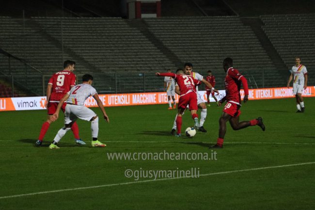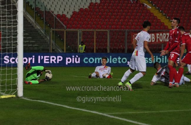 ANCONA (4-3-3): Perucchini 6,5; Clemente 6 (25’ st Barnabà ng), Pellizzari 6, Cella 6, Agyemang 6; Saco 6,5 (36’ st Marenco ng), Gatto 6, Paolucci 5,5 (25’ st Peli ng); Energe 6,5 (19’ st Cioffi ng), Spagnoli 7, Mattioli 5,5. A disp.: Vitali, Testagrossa, Martina, Nador, Kristoffersen, Dutu, Radicchio, Gavioli, Basso. All. Colavitto