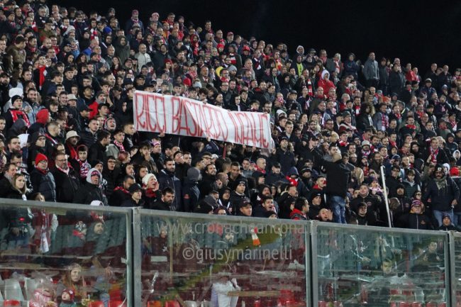I tifosi della Curva Nord, e non solo, beccano da subito Ricci, l’Ancona va per prima alla conclusione con Paolucci, centrale, un destro a girare di Lipari al 16’ viene deviato in angolo da Saco. La catena di destra dell’Ancona funziona, al 24’ un traversone di Clemente trova la testa di Spagnoli, l’inzuccata non inquadra la porta.