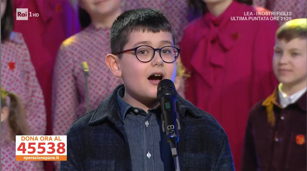 L’ultima puntata del concorso canoro dell’Antoniano di Bologna, per la regia di Maurizio Pagnussat, è andata in onda oggi pomeriggio in diretta su Rai1. E’ stata condotta dal direttore artistico Carlo Conti che dopo due ore e mezzo di musica e spettacolo ha decretato il vincitore di questa edizione. Tra le 14 canzoni in lizza, Edoardo è stato l’ottavo interprete nella scaletta di oggi. La sua canzone raccontava «di un bambino chiacchierone che parla sempre, ma vuole significare anche che oltre a parlare bisogna anche ascoltare. Un modo per risolvere la pace tra i popoli» ha spiegato al microfono. E per questo ha ricevuto anche i complimenti di Diletta Leotta, ospite in veste di giurata insieme a Paolo Conticini, Rocío Muñoz Morale ed Elisabetta Terracini. «Molto bella questa canzone e regala anche un bel messaggio. – ha detto Leotta – Un messaggio ancora più potente perché i bambini con la loro leggerezza arrivano a tutti. Bravo Edoardo». Il ragazzino che si è detto anche appassionato di storia, ha spauto anche tener banco nella gag inscenata con il conduttore. Conti ha scherzato «Oh, finalmente con Edoardo possiamo parlare dei Babilonesi…e sa tutto a memoria il codice di Hammurabi, vero?» dopo che aveva chiesto invano a chi l’aveva preceduto al microfono sperando che qualcuno gli riferisse qualche dettaglio su questo popolo antico..