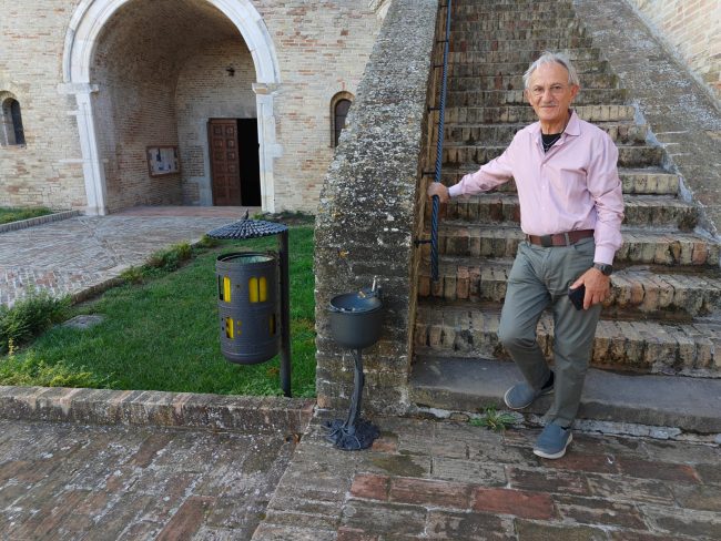 Domenico Antognozzi vicino al corrimano installato per aiutare i visitatore a salire al piano superiore
