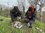 PORTO RECANATI – Al lavoro nel fosso di Scossicci i carabinieri forestali con una squadra di volontari. Dalla vegetazione e dal terreno continuano a spuntare sacchi: sinora 55 le carcasse
