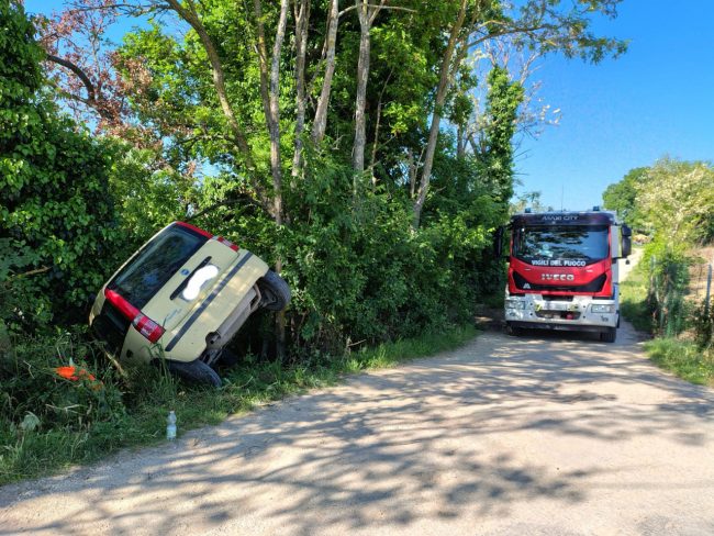 Auto fuori strada finisce nel fossato. Incidente questa mattina attorno alle 8,30 in contrada Peschiera a Piediripa di Macerata. Qui una Fiat Panda, per cause in corso di accertamento da parte della polizia locale, è finita fuori strada cadendo nel fossato che costeggia la strada di campagna. Alla guida un ragazzo che è uscito illeso dall’abitacolo.